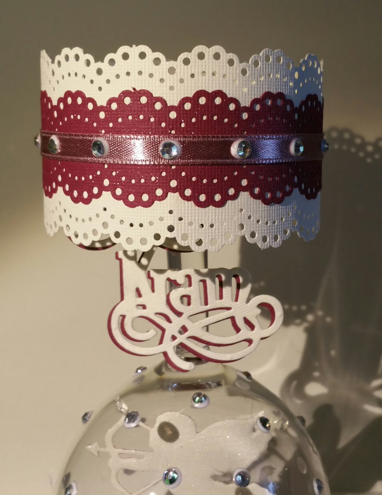 Å bården på den här använde jag mig av en MS stans istället men med samma ord kram på glasets fot å bling förstås för annars är de ju inte jag.